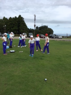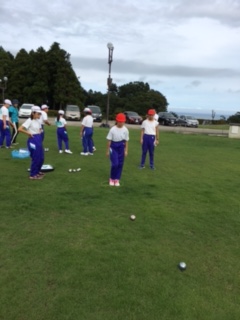 宿泊学習1日目、午後の活動は、「ニュースポーツ」です。三校の友達ともみんな打ち解け、なかよく楽しみました。