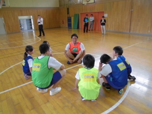 前半は、体育館でゲームを、後半は、教室で古木先生のお話を聞きました。