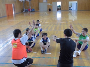 中学生の意気込みを聞いた後は、迫力ある練習の成果を見せてもらいました。その後は、小学生の応援団によるエールが送られ、体育館中に響く大きな声で選手を激励しました。中学生には、一つでも多く勝てるように頑張って欲しいですね。