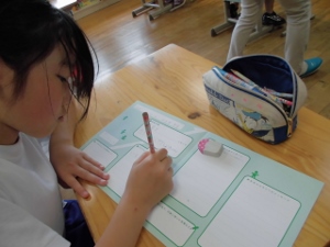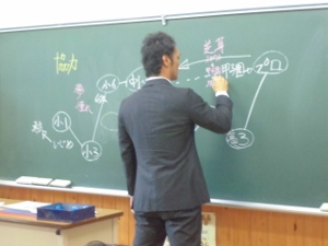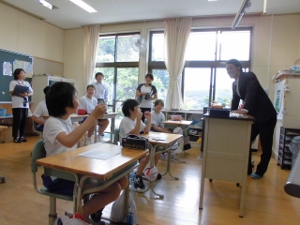 授業はICTを用いて児童のノートの内容を画面に映し出せられるようになっており、他の児童の考えを知るのに分かりやすくなる、などの工夫がなされていました。「みんなに見られるからいつもより丁寧に字を書いた。」などの感想をもらす児童もおり、隠れた効果もあった様子です。今後は、事後研究会の話し合いを元に、より良い授業作りに励んでいきます。