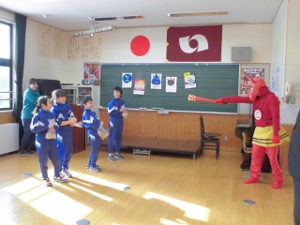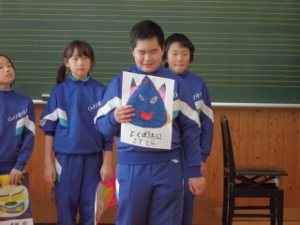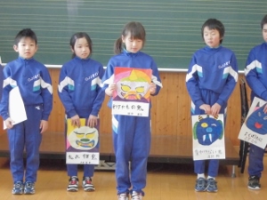 校長先生からは、旧暦の正月になることから、節分を機にまた新たな気持ちでがんばりましょうとお話しをいただきました。その後、小学生からは、自分の追い出したい鬼を、中学生からは今年の決意表明をひとりひとりしました。