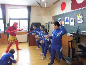 そして、それらの鬼を追い出すために豆まきをしました。すると、そこに本物の鬼!?が登場!