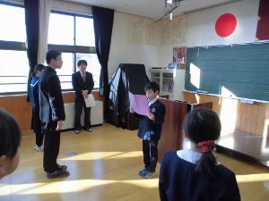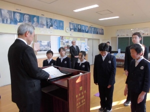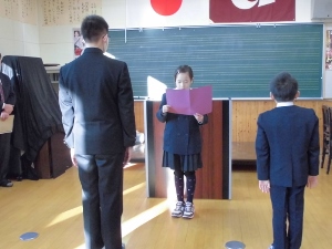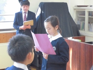 児童生徒代表で4年生の児童が3学期の目標の発表をしました。しっかり発表できました。