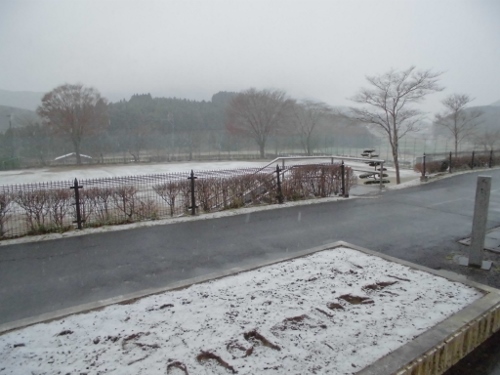 今日は朝から今までは違う寒さを感じていましたが、午後から初雪が降りました。