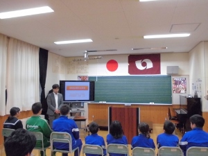 2015年11月27日 15時30分 昨日、給食の時間に栄養士の先生が来校され、和食によく使われている食品についてのお話をしてくれました。