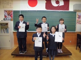 はじめに、マラソン大会、方部書写造形展の表彰がありました。