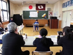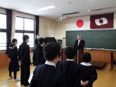校長先生からは、東日本大震災の記憶を風化させてはならないことや未来の福島を担う立派な人材へと成長してほしいことなどの話がありました。また、係の先生からは、災害に備えた準備についての話、中学校の教頭先生からは「ふくしまの未来へ2015~3月11日知事メッセージ~」の紹介がされました。