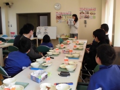 今日は、栄養士の先生がいらっしゃいました。今年度最後の今日は、4つの「食べる」についての話がありました。