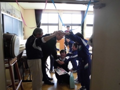 卒業生のために、小学生全員に中学生2人もお手伝いに加わり、力を合わせてがんばりました。