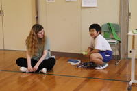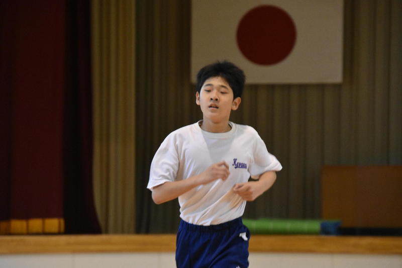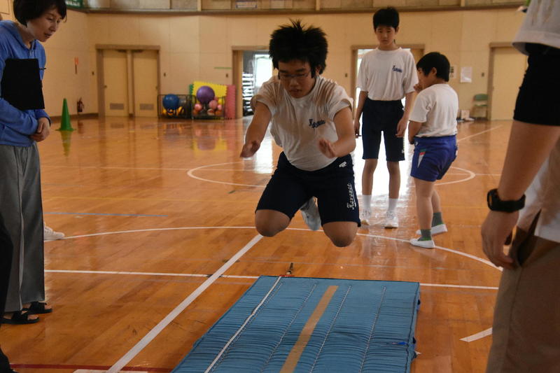 気温がなかなか上がらず、小学校は体育館での授業となりました。いつも授業は1人で受けていますが、今日はまわりにお友だちがたくさんいたので、いつも以上に真剣に、楽しく授業を受けました。