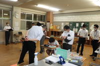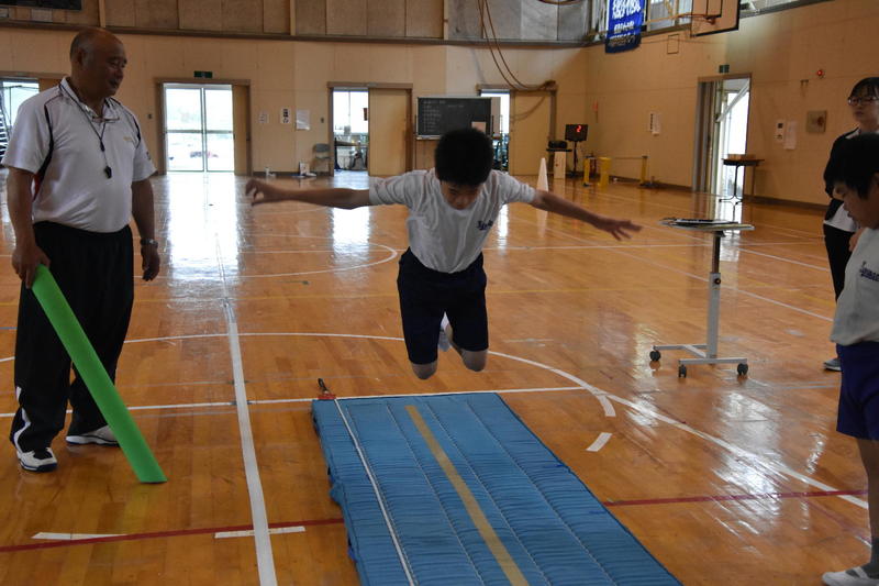今日は、3・4校時に校内体力・運動能力テストを行いました。雨模様で50m走は延期になってしまいましたが、①握力、②反復横跳び、③長座体前屈、④上体起こし、⑤立ち幅跳び、⑥ハンド・ソフトボール投げ、⑦シャトルランの順で計測しました。