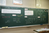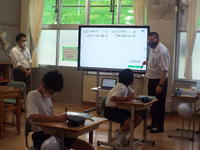 授業では連立方程式の文章問題にチャレンジ。ICTサポータも加わり、電子黒板を使用しました。たくさんの先生方に囲まれながらも生徒達はいつも通り積極的に発言し、賑やかな授業となり、他校の先生方が感心していかれました。