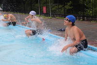 中学生は今年初の水泳の授業でした。他の生徒と十分な間隔をとってプールに入りました。クロール、平泳ぎ,バタフライ(的な泳ぎ?生徒談)と一通りの確認を行いました。こちらも楽しく賑やかな授業となり、あっという間に時間が過ぎていきました。