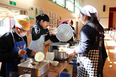 お昼は、地域の皆様も交えて「ふれあい給食」を開催。