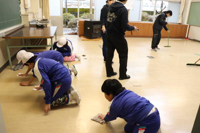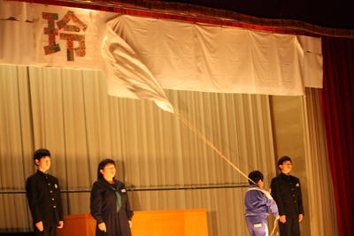 前期生徒会長を、後期役員が応援し、今後の生徒会を引き受けました。