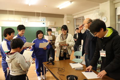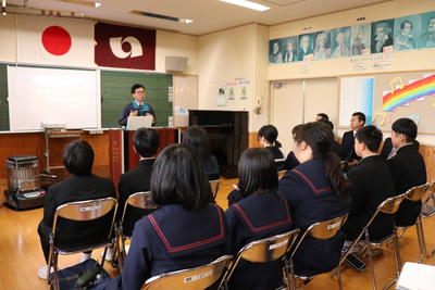 中学1年生は、「ぼくたちはなぜ働くのだろう。ぼくたちはなぜ学ぶのだろう。」というテーマに沿って、これまでの行事や講座を通して関わってきた様々な人たちから学んだことを発表しました。