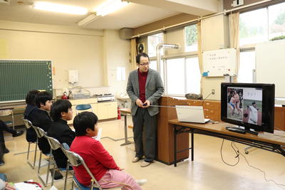 担任の先生と一緒に、「あらしのよるに」を音読しました。