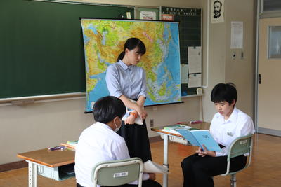 6月に実施された国際交流授業を思い返すところから授業はスタート。