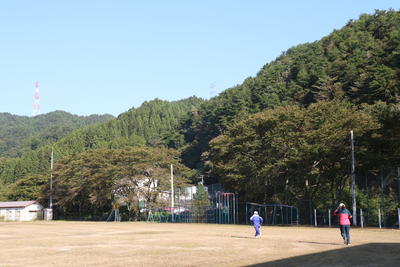 秋晴れのもと、担任の先生と一緒に気持ちのいい汗を流していました。