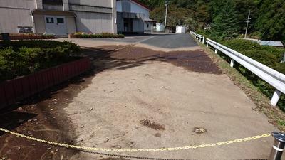 グラウンド側から玄関を横切る雨水,フェンスを押し倒して流れてきた山からの雨水が流れ込み,校地前の小川が大量の土砂が流されました。