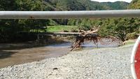 流木などによる堰や木橋,吊り橋が決壊,道路崩落など。激しい流れがうかがえます。