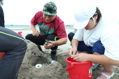 まず、四倉海岸に到着した子どもたちは、磯の香りを感じながら、目の前に広がる海に目を輝かせていました。