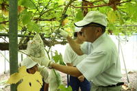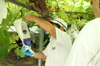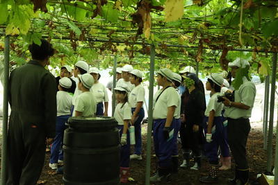 「ぶどう栽培学習」の山場となる“収穫”は、桶売小・小白井小の皆さんも一緒に参加しました。