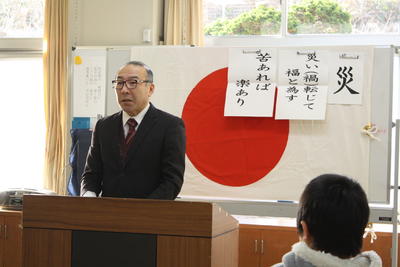 校長先生から、今年の漢字「災」に掛けて、「災い(禍)転じて福となす」という言葉が紹介されました。