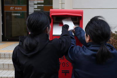 児童生徒会では、「ふれあい郵便」として寒中見舞いのハガキを作成しました。