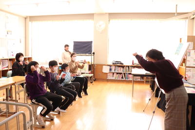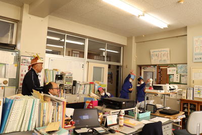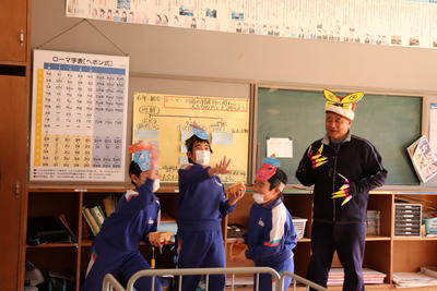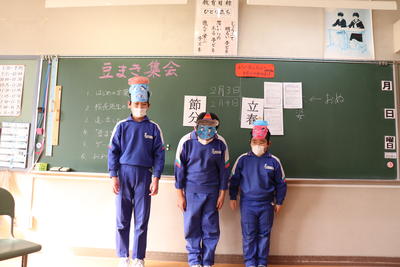 まずは教室で、追い出したい鬼の発表や豆まきにちなんだゲームをみんなで行いました。