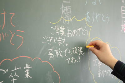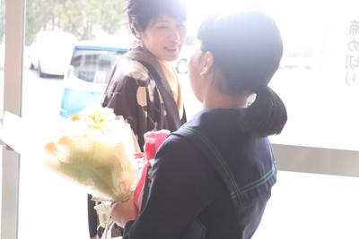 卒業生は、在校生への感謝のメッセージを述べ、先生方に色紙を贈呈しました。