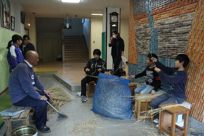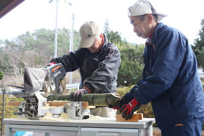 本日の門松作りも例年通り、たくさんの地域の方々、社会福祉協議会の方々、保護者の方々も来てくださり、みんなで一斉に製作に取りかかりました。
