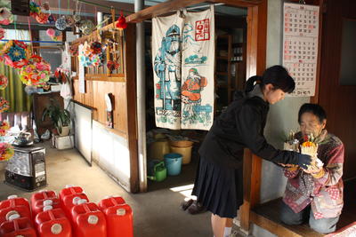 完成した門松は、一人暮らしのお年寄りのお宅へ一軒一軒お伺いしてお届けしました。