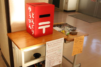 どんぐりをお金代わりにはがきと切手を購入し、友達や先生方にお手紙を出せる仕組みです。