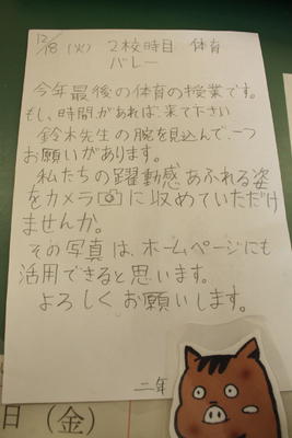 と、いうことで2学期最後の体育の授業にお邪魔してきました。