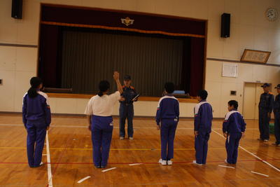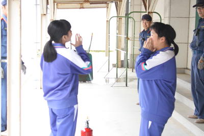 この日の天候は雨だったため、避難後、体育館に移動し、川前分遣所の方からご指導をいただきました。