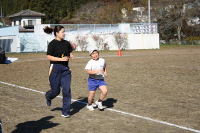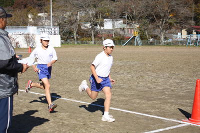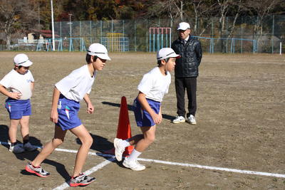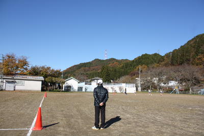 雲一つない青空の下、小学生の3名は持久走記録会で、自分の記録に挑戦しました。