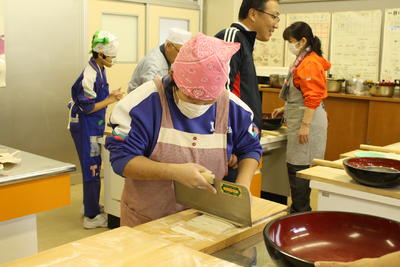 川前そば打ち研究会のお二人にお越しいただき、全員でそば打ちに挑戦しました。