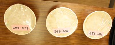 子どもたちは、いつも家で使っている茶碗にごはんをよそってみて、自分の食べている量を確認しました。