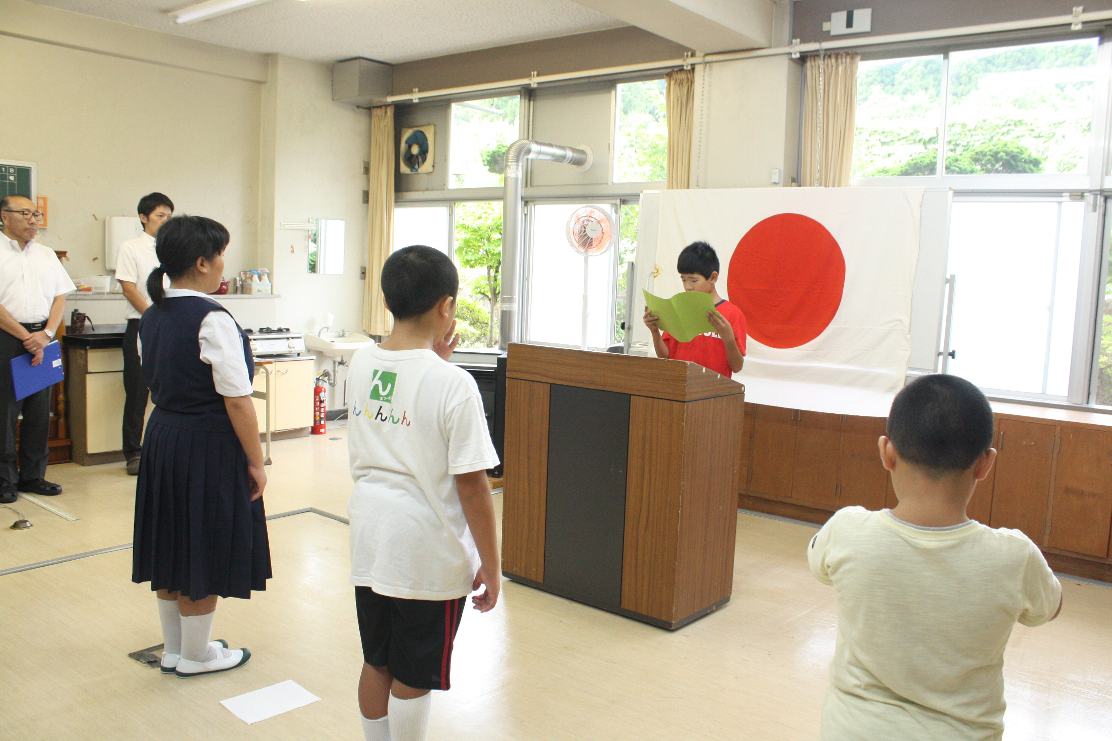 次に、小中学生それぞれ1名ずつ一学期の反省を発表しました。