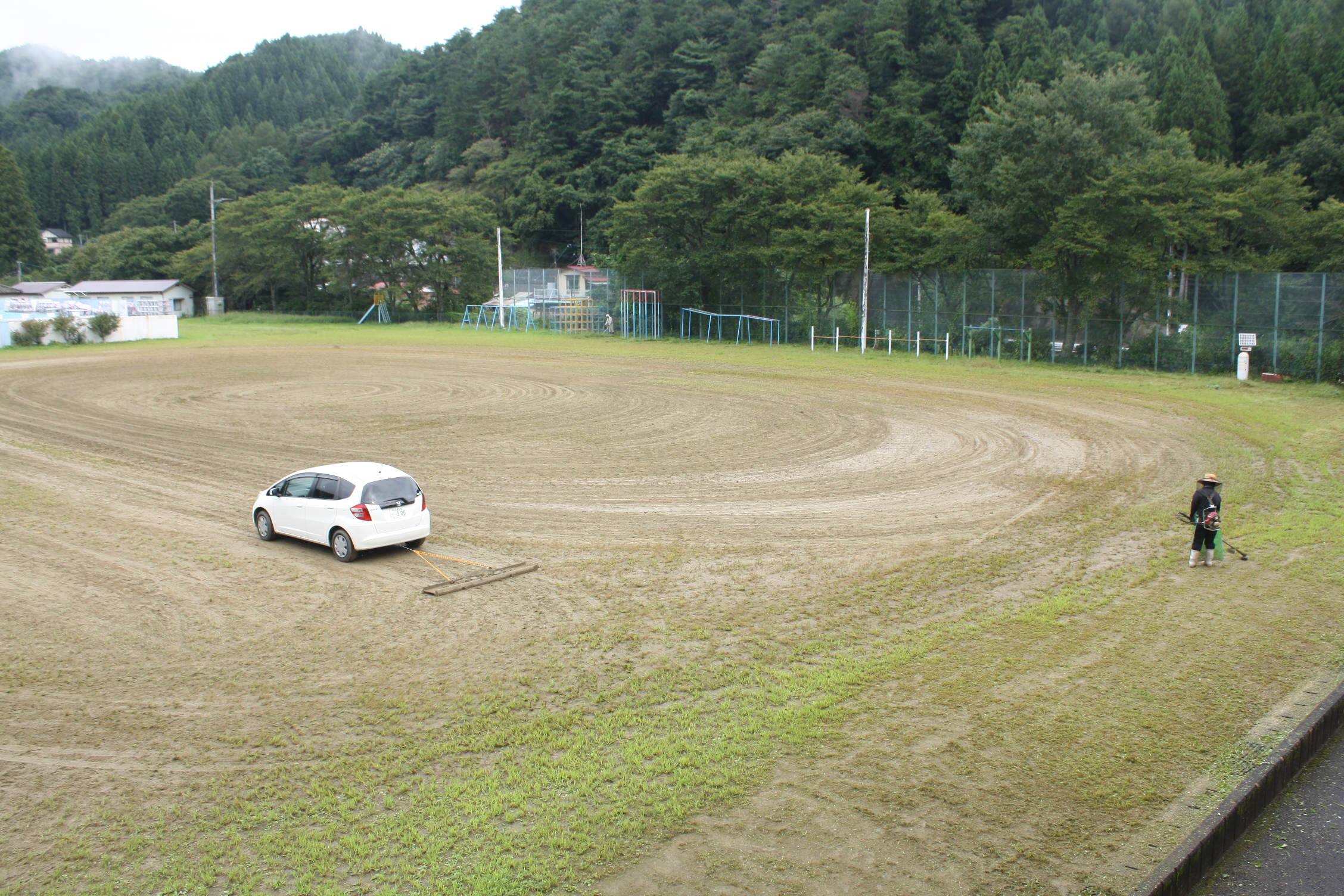 屋外では、敷地内の草刈り、校庭のレーキがけを行いました。