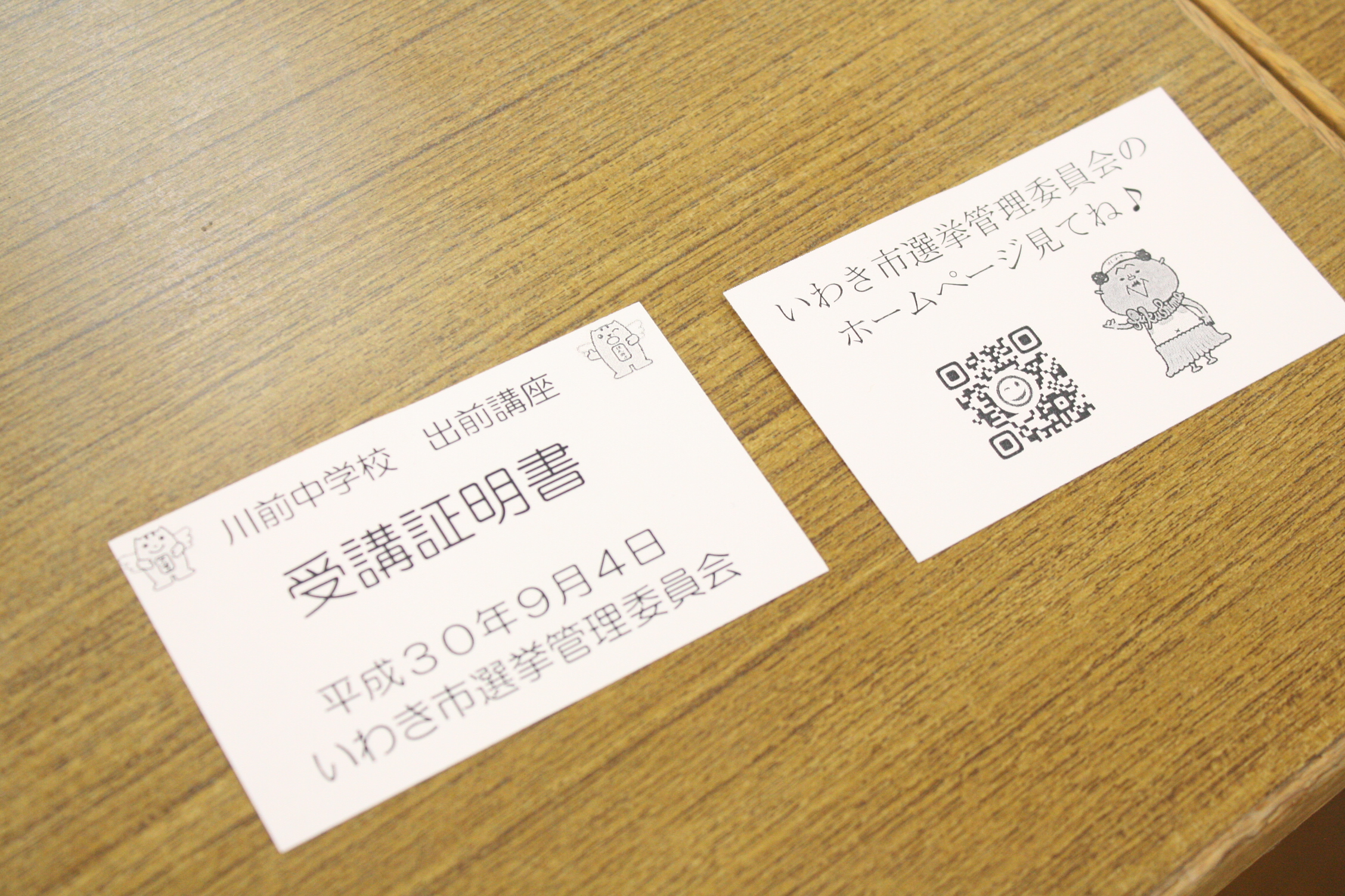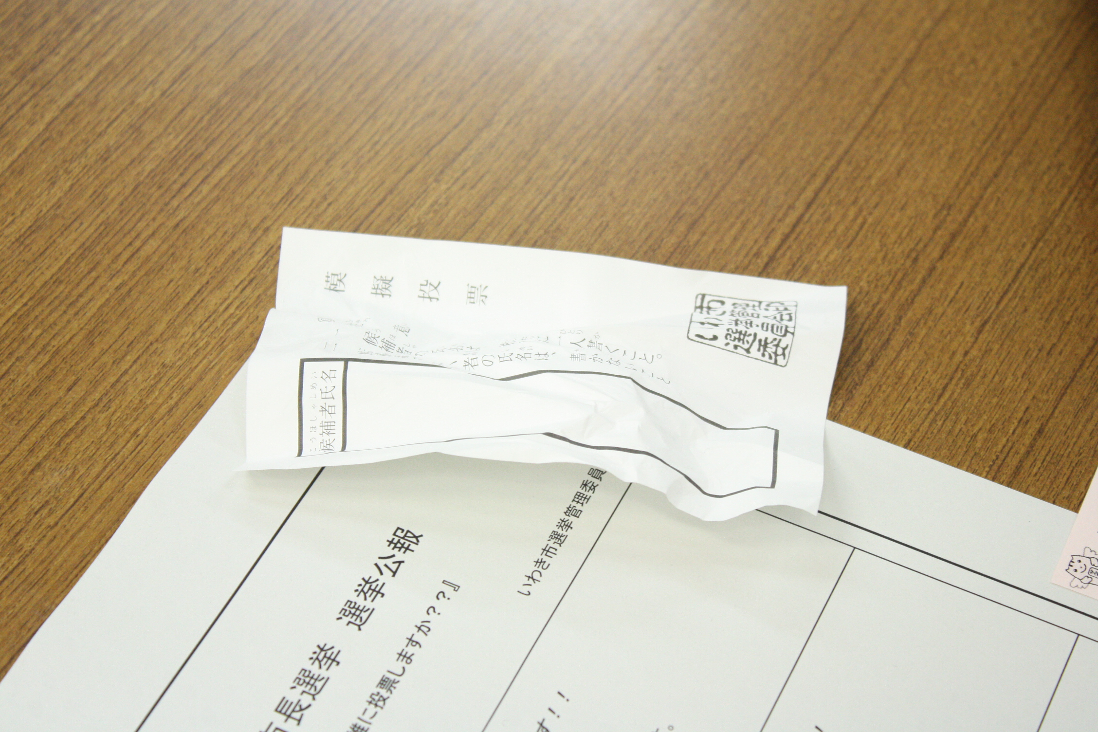 9月3日(火)、「いわき市未来の有権者育成モデル事業」の一環として、いわき市選挙管理委員会の方々にお越しいただき、選挙についての講義と、選挙を体験する出前授業が行われました。