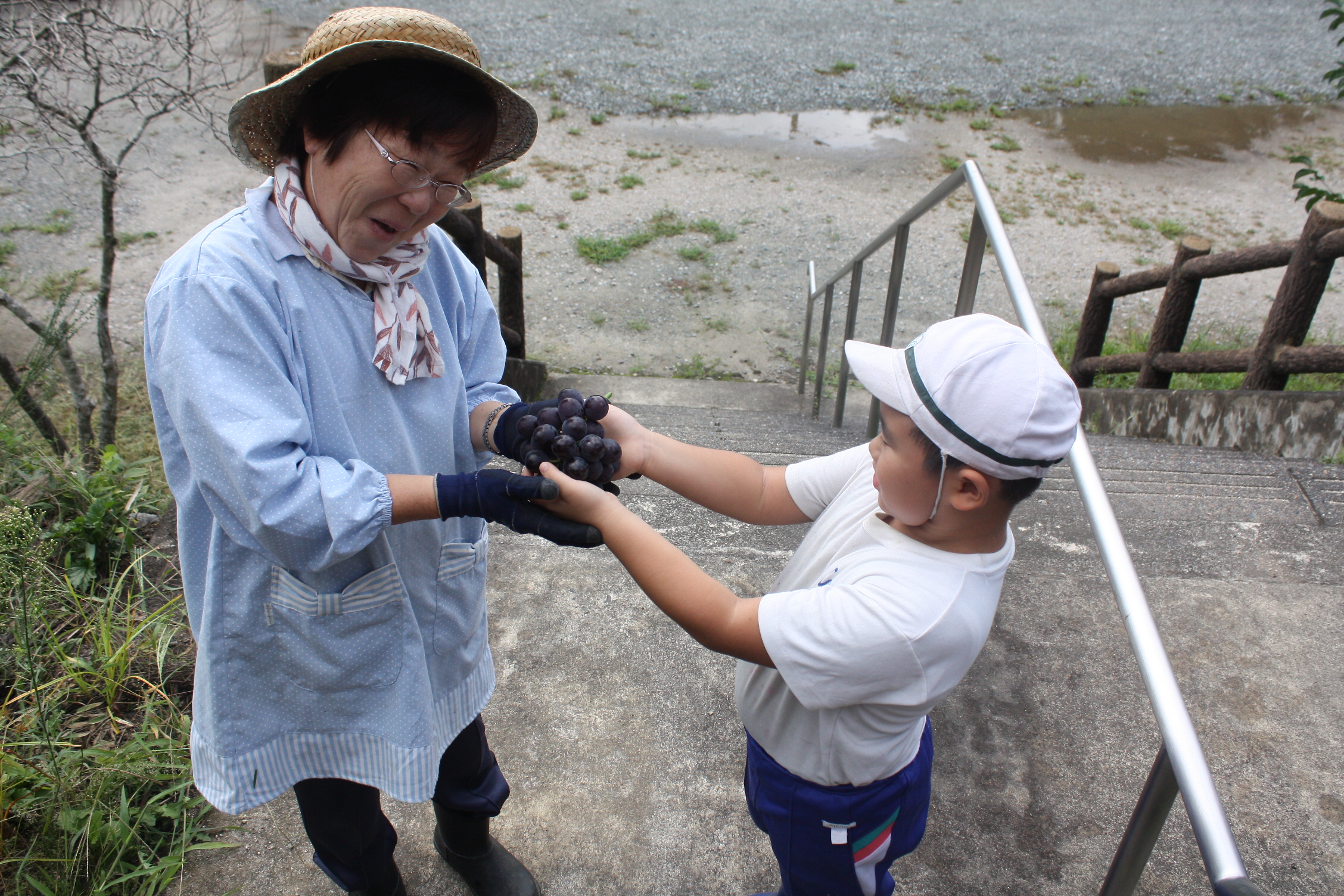 収穫したぶどうは、それぞれが家に持ち帰るだけではなく、学習でお世話になった方にお裾分け。