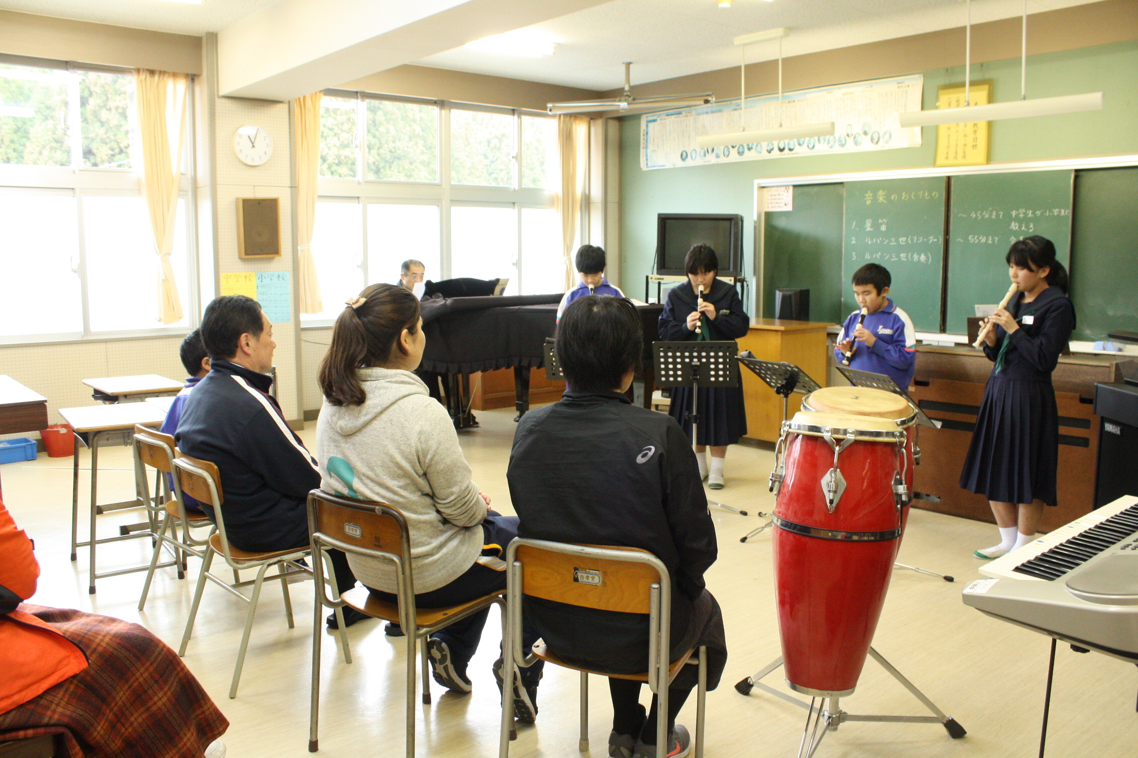 音楽では、合同で練習を重ねてきた演奏を先生方の前で発表しました。