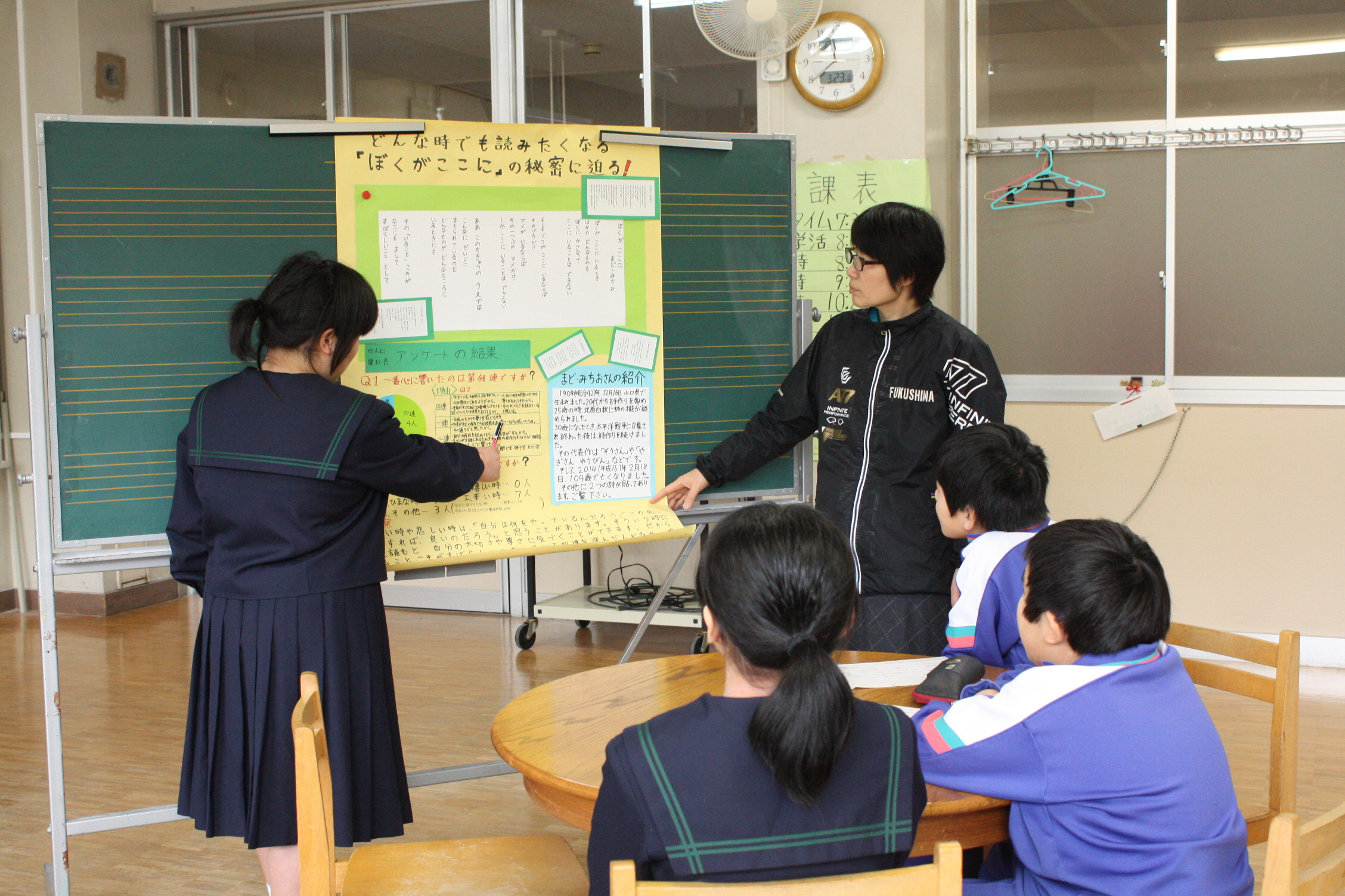 授業で学んだ詩や作文を発表したり、一年間をまとめた冊子や、オリジナルの物語を読み合ったりして、お互いの学習の成果をたたえ合いました。