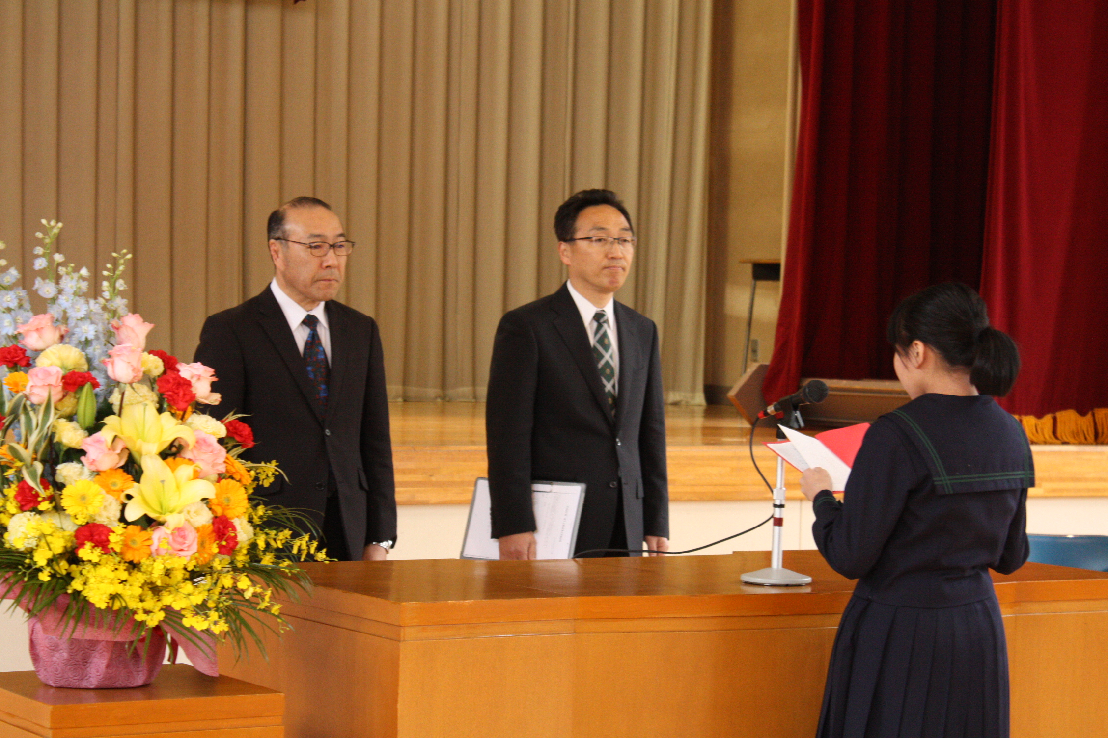 児童生徒会長から川前小中学校の魅力が詰まった歓迎の言葉がありました。
