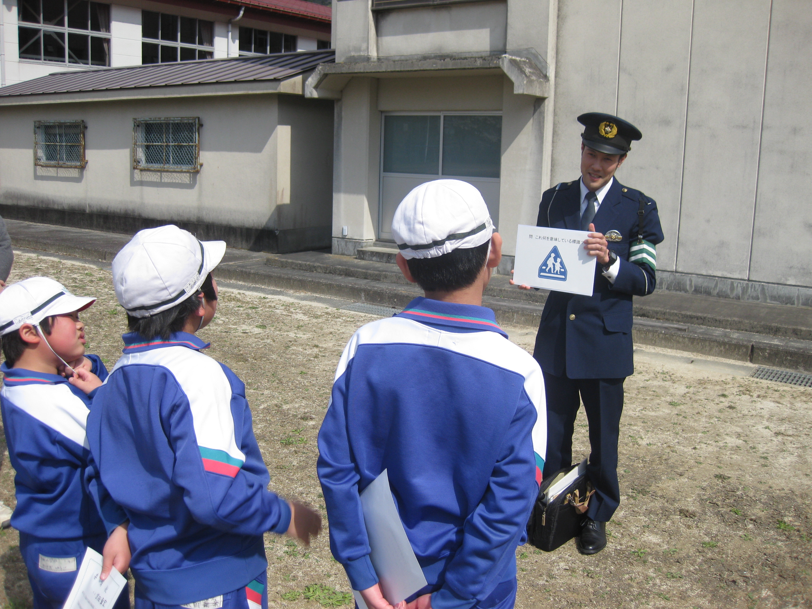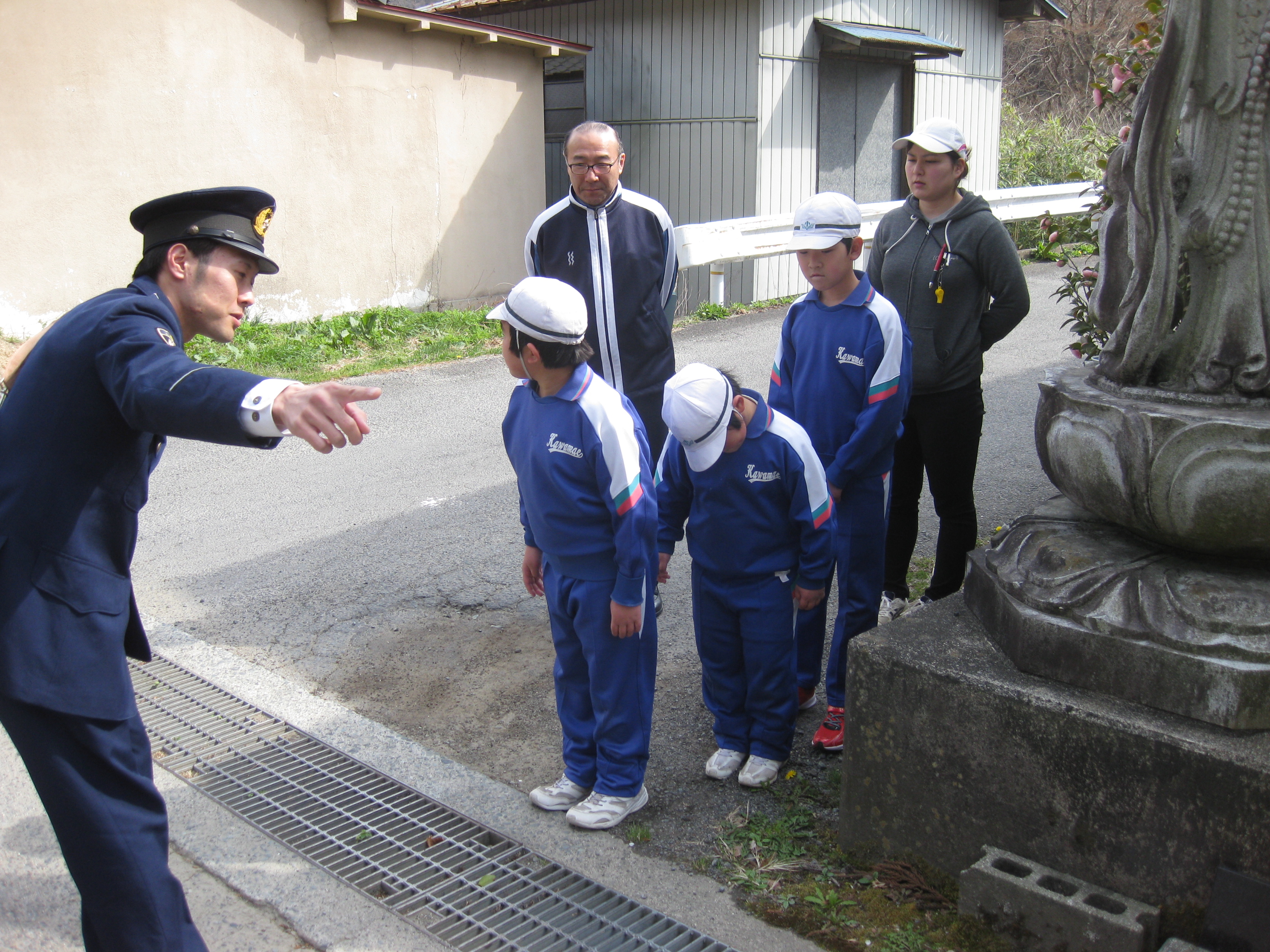 川前駐在所の駐在さんをお招きし、小学生に通学路の安全な歩行についてご指導いただきました。