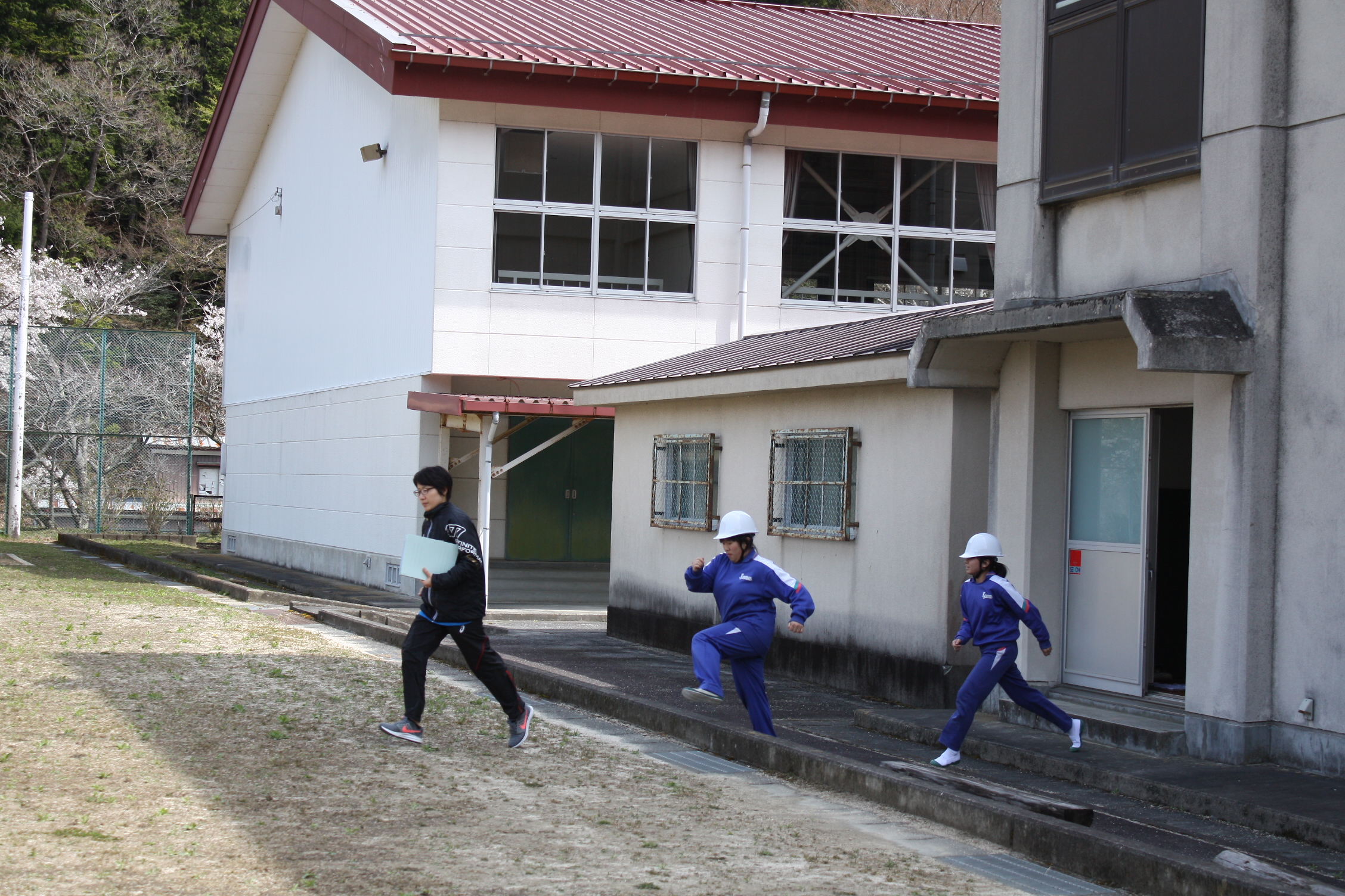 昨年度の避難訓練の反省を生かし、児童生徒はヘルメットを着用すること、倒壊の恐れがある校舎の近くを通らないことを徹底しました。