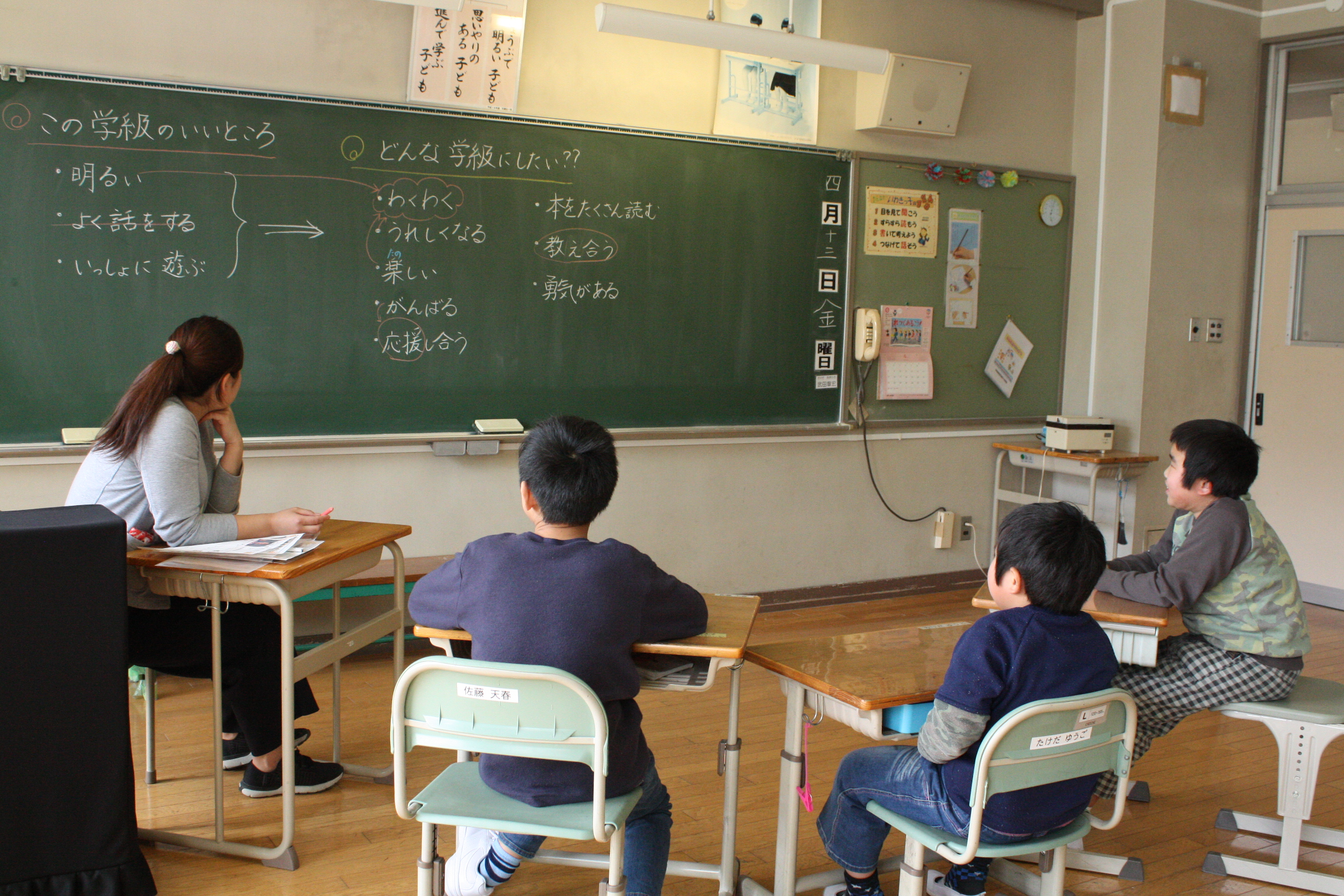 小学生は2年生と6年生合同の学級活動で、学級目標を決めました。