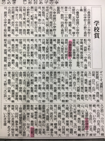 『第62回福島県書きぞめ展』において、川前中学校が奨励学校賞をいただきました。